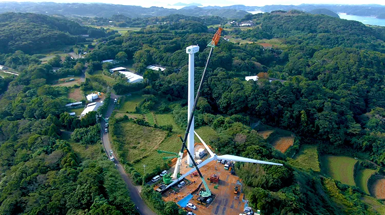 従来の大型クレーンを使用した解体工法のほか、転倒工法による解体など、最新の解体工事技術を駆使して、大型風力発電所の解体撤去工事の計画〜設計〜施工までの一貫管理を行なっています。